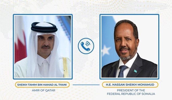 Mogadishu (HOL) – Somali President Hassan Sheikh Mohamud held a phone conversation with Qatar’s Amir, Sheikh Tamim bin Hamad Al Thani, on Monday to enhance their long-standing bilateral ties and cooperation.