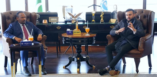 Sheikh Noor Mohammad Hassan, the Ambassador of Somalia to Pakistan, held a pivotal meeting with Ibrahim Hasan Murad, President of the University of Management and Technology (UMT) and former Minister, at UMT’s Johar Town campus in Lahore.