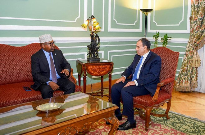 Mogadishu (HOL) – Somalia’s Foreign Minister, Ambassador Ahmed Moallim Fiqi, met with Dr. Badr Abdel Atty, Egypt’s Minister of Foreign Affairs, to discuss enhancing regional stability and deepening cooperation between the two nations.