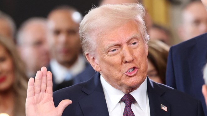 U.S. President Donald Trump takes oath on the day of his Presidential Inauguration at the Rotunda of the U.S. Capitol in Washington, U.S., Jan. 20, 2025. (Reuters Photo)