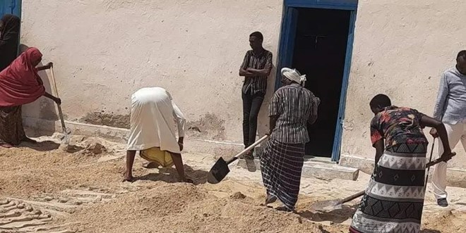 Local volunteers at work clearing the sand blocking roads Central Somalia/File Photo/Ergo