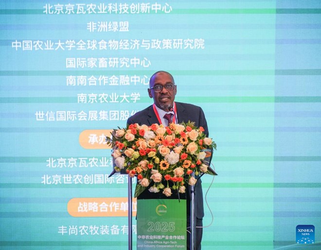 Hamadi Boga, vice president of Alliance for a Green Revolution in Africa (AGRA), delivers a speech during the inaugural Africa-China Forum on Agri-Tech and Industrial Cooperation in Nairobi, Kenya, on June 24, 2025. The inaugural Africa-China Forum on Agri-Tech and Industrial Cooperation took place on Tuesday in Nairobi. The day-long conference was hosted by Nairobi-based Alliance for a Green Revolution in Africa (AGRA), Beijing Jingwa Agricultural Science and Technology Innovation Center, the International Livestock Research Institute and the Finance Center for South-South Cooperation. (Xinhua/Li Yahui)