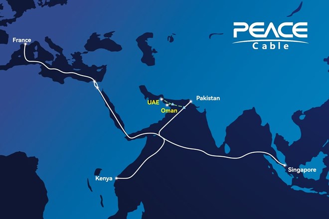 A map of the PEACE Cable network, an undersea fibre-optic system connecting Europe, Africa, and Asia. A recent break in the cable in the Red Sea has disrupted internet services in Somalia and other East African nations, impacting connectivity and streaming quality.