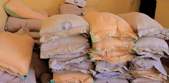 Sacks of food supplies stacked inside a storage facility in Somaliland. Authorities have recently banned the importation of empty packaging materials, citing concerns over the illegal repackaging of expired food products, a practice that poses significant public health risks.