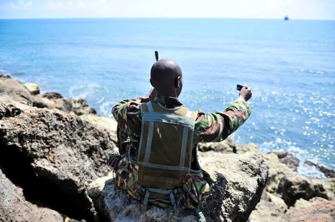 A Somali soldier takes a picture of himself with his mobile phone (Alamy)