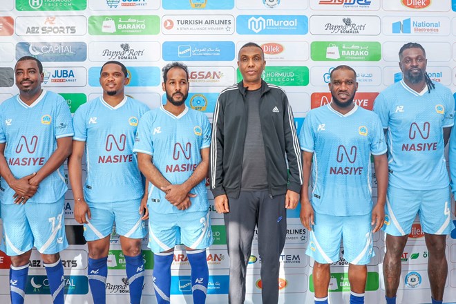 The match, attended by the President of the Council of East and Central African Football Associations (CECAFA), Augustino Parek Maduot, featured legendary players including Samuel Eto’o, Jay-Jay Okocha, and Emmanuel Adebayor, who played alongside Somali Premier League stars against a squad of former Ocean Stars.