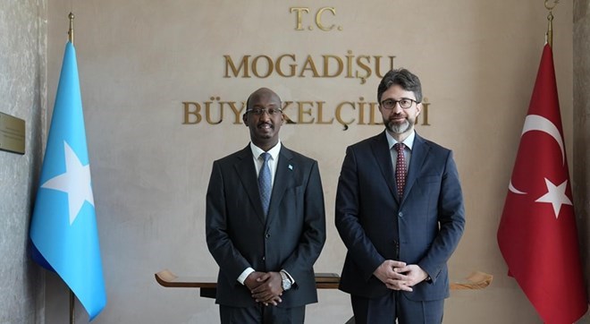 Mogadishu (HOL) – Somalia’s Minister of Fisheries and Blue Economy, Ahmed Hassan Aden, held a high-level meeting with Turkish Ambassador to Somalia, Alper Aktas, in Mogadishu to advance bilateral cooperation in the fisheries and maritime sectors.