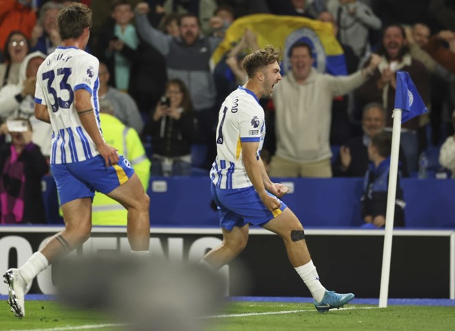 Substitute Jack Hinshelwood scored with his first touch of the ball and gave Brighton a thrilling 3-2 win over Liverpool on Monday and kept alive its slim chance of European football.