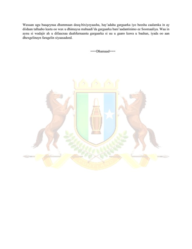 “Gargaarka waa in lagu salleeyaa baahida dadka, ee ma aha in loo adeegsado dano siyaasadeed,” ayaa lagu yiri warbixinta Puntland. Maamulka ayaa sidoo kale sheegay inay ka go’an tahay in gargaarka loo qaybiyo si caddaalad ah, lagana fogaado wax kasta oo keenaya eex siyaasadeed.