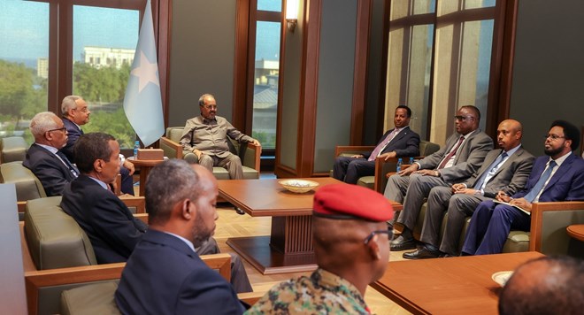 “Intii uu kulanka socday, Madaxweyne Xasan Sheekh Maxamuud ayaa Wasiirka la wadaagay xaaladda guud ee dalka, gaar ahaan dadaallada socda ee dib u dhiska, horumarinta iyo howlgallada lagu ciribtirayo Khawaarijta Daacish iyo Al-Shabaab, isaga oo uga mahadceliyay shacabka iyo Dowladda Jabuuti hiilka walaalnimo ee ay la garabtaagan yihiin walaalahooda Soomaaliyeed” ayaa lagu yiri qoraal kasoo baxay Madaxtooyada Soomaaliya.
