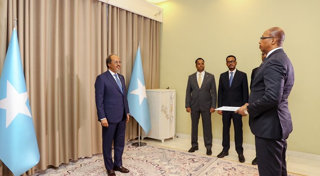 Madaxweyne Xasan Sheekh ayaa uga horeyn ugu hambalyeeyey safiirradan cusub iney ku soo biireen safka diblomaasiyiinta ka howlgala Soomaaliya, isagoona xusay muhiimada ay leedahay xoojinta xiriirka laba geesoodka ah iyo iskaashiga caalamiga ah ee Soomaaliya la leedahay dalalkan.