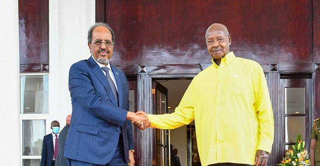 Afhayeenka madaxtooyada Soomaaliya ayaa sheegay in Madaxweyne Xasan Sheekh uu la kulmay dhiggiisa Madaxweynaha Dalka Uganda Yoweri Museveni oo ay ka wada hadleen xoojinta xiriirka labada dal, gaar ahaan dhinacyada amniga, dhaqaalaha iyo dagaalka ka dhanka ah argagixisada.
