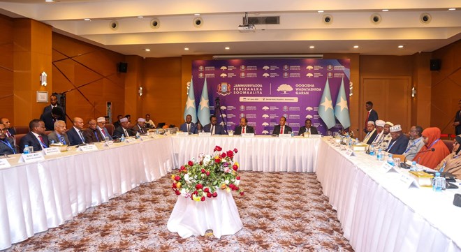 Isniin, Juun 16, 2025 (HOL) – Madaxweynaha Soomaaliya, Xasan Sheekh Maxamuud, ayaa si rasmi ah u furay Madasha Wadatashiga Qaran oo looga arrinsanayo mustaqbalka siyaasadeed ee dalka, isagoo madasha ka jeediyay khudbad uu diiradda ku saarayay adkaynta midnimada qaranka, dhamaystirka dastuurka, hannaanka doorashooyinka, dagaalka ka dhanka ah argagixisada iyo xoojinta dowladnimada.