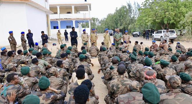 Taliyaha Ciidanka Boliiska Soomaaliyeed Sarreeye Guuto Asad Cismaan Cabdullaahi oo uu wehliyay Taliye ku xigeenka Sarreeye Guuto Cismaan Cabdullaahi Maxamed ayaa Magaalada Muqdisho ka sagootiyey Ciidamaan Boliiska katirsan waxaana ay kula dardaarmeen inay xoojiyaan ciidamasa kale ee furimaha dagaalka jooga.