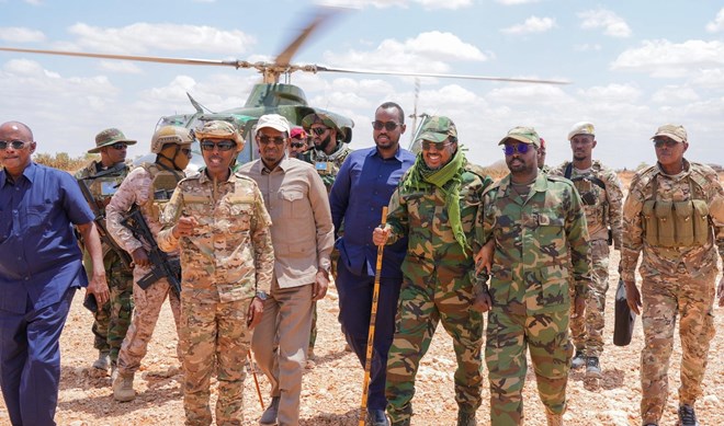 Madaxweyne Xasan Sheekh ayaa u kuur gali doona mudada uu ku sugan yahay degmada Aadan Yabaal xaalada ciidamada xoogga dalka iyo kuwa dadka deegaanka ee u istaagay xoreynta deegaanadooda, isagoona warbixino la xariira howlgalada ka dhegeysan doona talisyada iyo hoggaannada ciidamada ku sugan furimaha dagaalka.