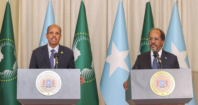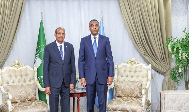 Kulamadaan kala duwan uu Guddoomiyaha Midowga Afrika uu la qaatay Madaxweynaha iyo Ra’iisul wasaaraha Soomaaliya ayaa diiradda lagu saaray ammaanka iyo xoojinta dagaalka Al shabaab.