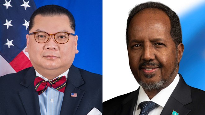 “Imika Xasan Sheekh Maxamuud waxa uu u maleynayaa in dadka Maraykanku ay doqmo yihiin, oo uu siin karo dekedo aanu maamulin, kuwaasoo ku yaalla Somaliland iyo Puntland,” ayuu yidhi Pham.