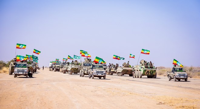 Ciidanka Itoobiya ee ku sugan Baydhabo ayaa maanta halkaas ku sameeyey dhoolatus Mileteri oo ay ku soo bandhigeen gaadiidka gaashaaman ee dagaalka oo ay ku muujinayeen awoodooda ciidan.