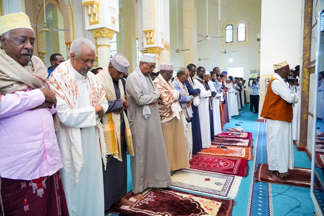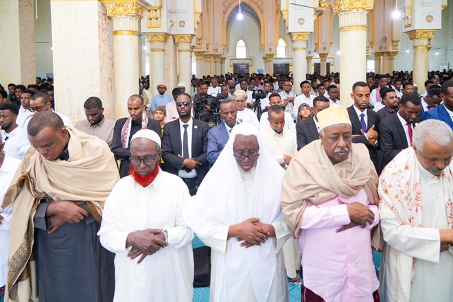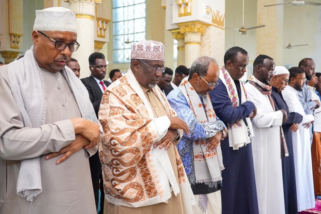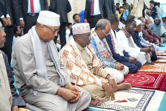 Axad, Maarso 30, 2025 (HOL) – Madaxweynaha Soomaaliya Xasan Sheekh Maxamuud ayaa Masaajidka Isbahaysiga Islaamka kula oogay Salaadda Ciiddul Fidriga, Kumannaan ka mid ah shacabka Soomaaliyeed, masuuliyiinta hay’adaha iyo howlwadeennada dowladda, waxaana uu ugu baaqay inay dhexdooda is caawiyaan.
