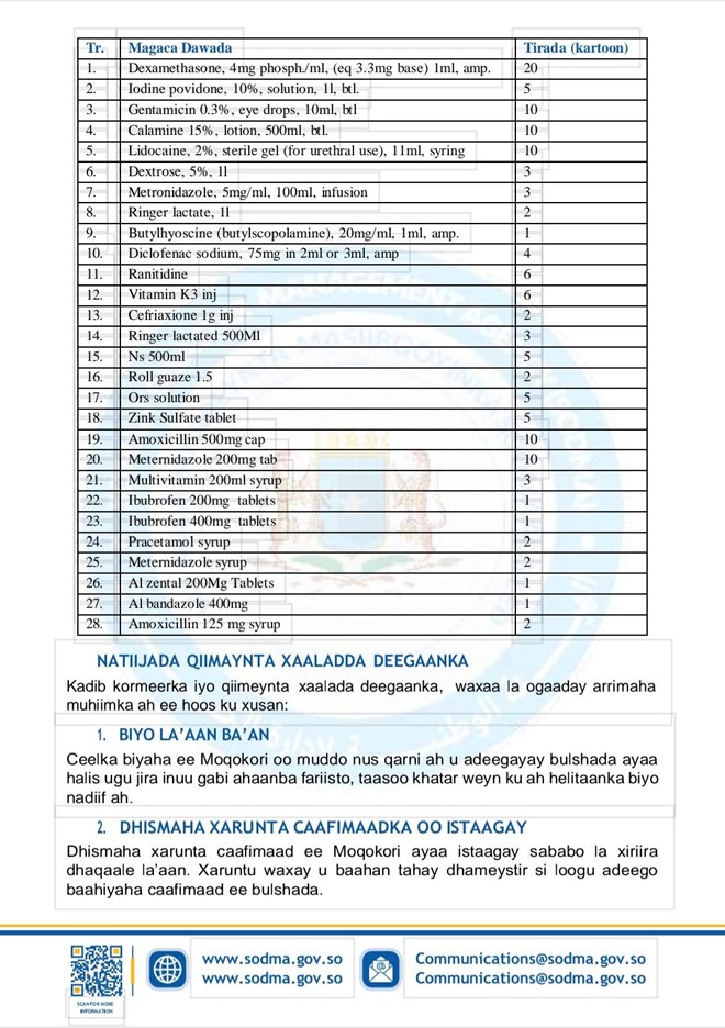 “Anagu daawooyinka aan geynay iyo kuwa muqaalka lagu soo bandhigay wax shaqo ah iskuma lahan, runtii cidii waxaas soo bandhigtay iyada ataa masuuliyadeeda qaadaneysa, anaga daawoyinka aan geynay waxay ahayeen kuwa tayo leh oo loogu tala galay xaaladaha deg dega ee dhaawacyada iyo hooyada iyo dhalaanka, taaso gaareysay hal tan” ayuu yiri masuul u hadlay SODMA.